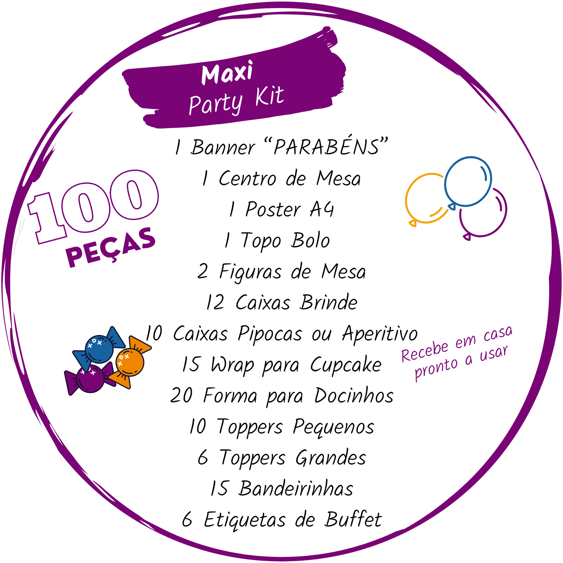 ✨ Maxi Party Kit (70€) — O mais completo, perfeito para quem quer um pouco mais de variedade e detalhes.